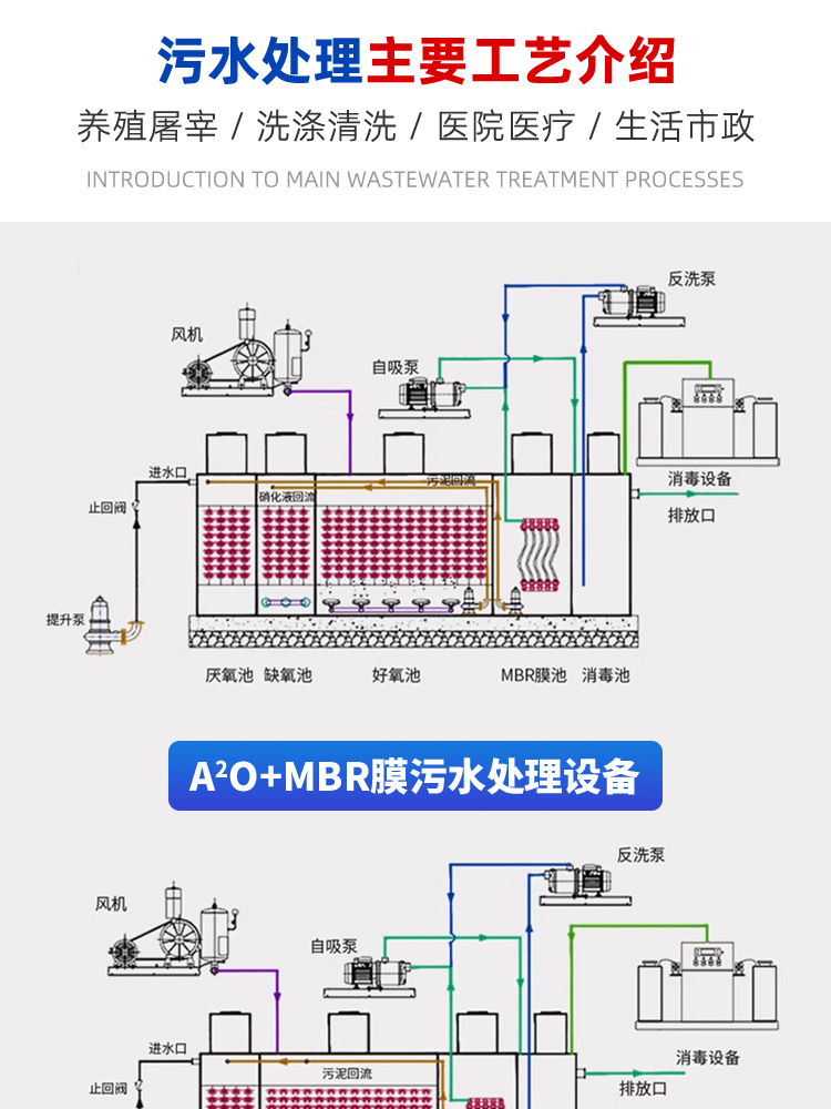 污水處理設備供應廠家擁有豐富的工藝技術和設備種類,能夠為客戶提供全方位、高效且環(huán)保的污水處理解決方案。在眾多工藝中,mbr膜、AO、生物接觸氧化、過濾、A2O、混凝沉淀以及SBR等均為我們的核心技術。